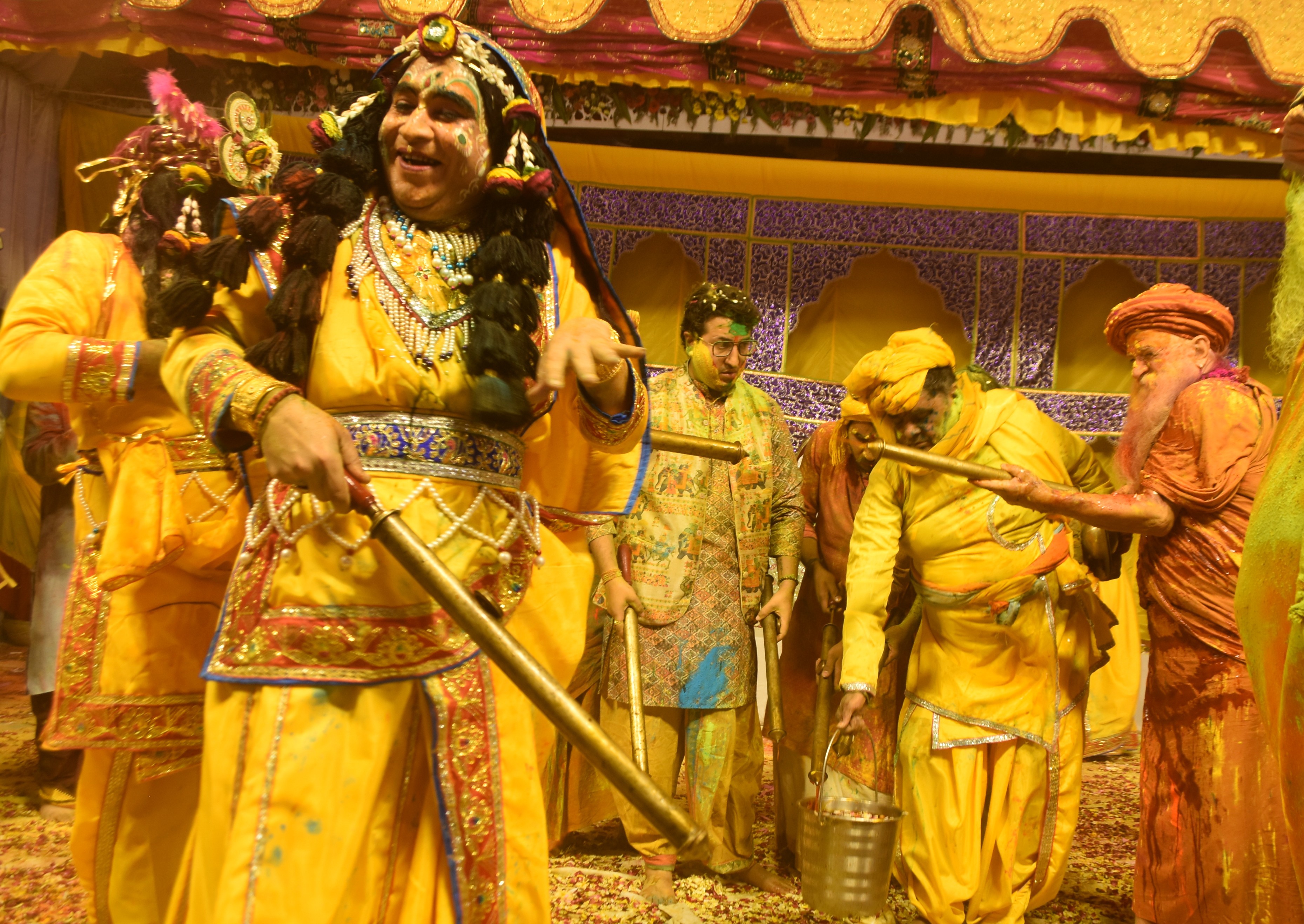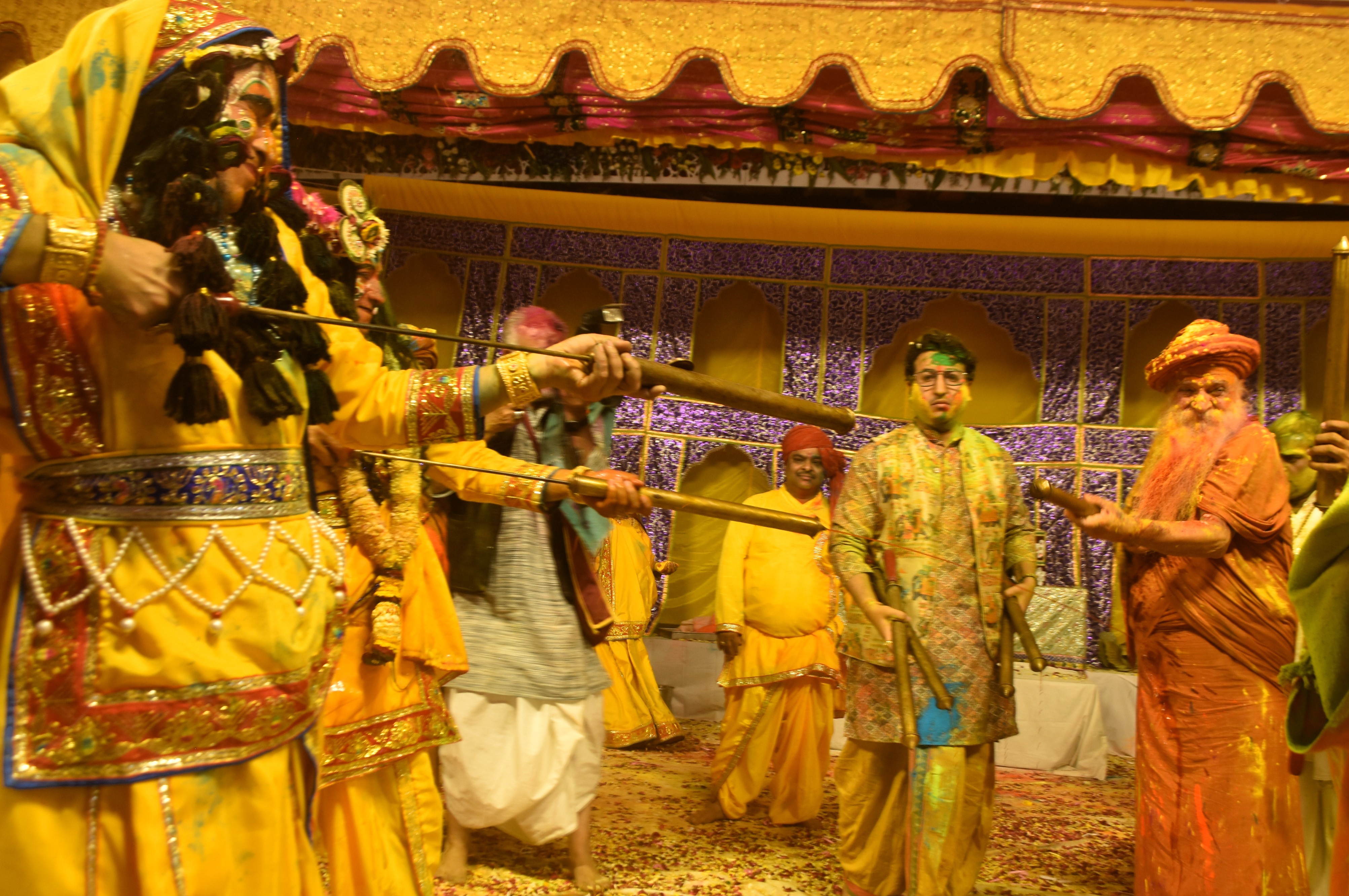 गुरुशरणानंद ने राधाकृष्ण के स्वरूपों पर लड्डू लुटाए। उनके साथ लठामार होली खेली। 11 कुंतल फूलों से होली हुई। अयोध्या के संत स्वामी रामानुजाचार्य भी रहे।