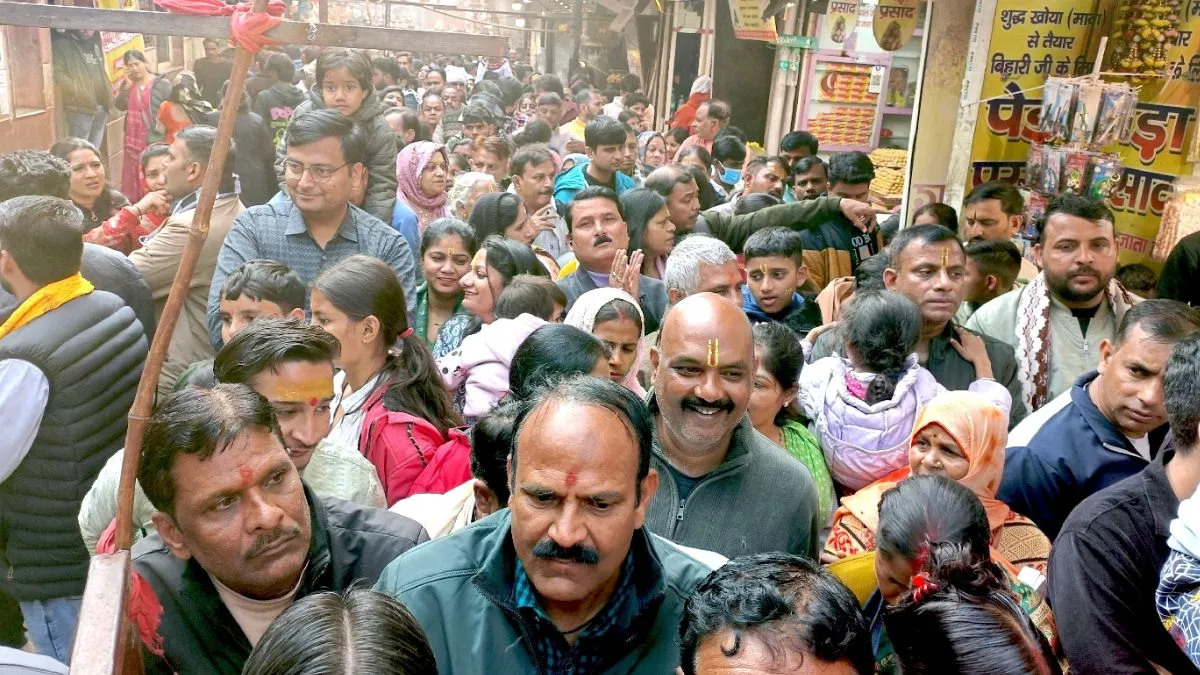 ठाकुर बांकेबिहारी के दर्शन के लिए श्रद्धालुओं में उत्साह, गलियां जाम; लगी लंबी-लंबी लाइन