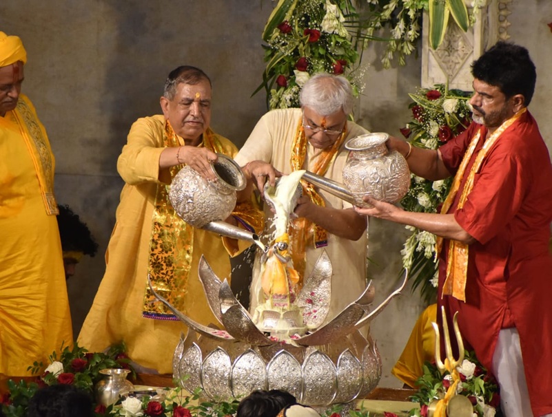 श्रद्धालुओं ने विधि-विधान से ठाकुरजी के जन्म का अभिषेक किया। देररात तक जन्मोत्सव की धूम रही। मोबाइल पर भी बधाई के संदेश चलते रहे। भगवान का व्रत रखकर भक्त अपने को धन्य समझते रहे। ठाकुरजी से सभी के कल्याण की प्रार्थना की गई। हर कोई भगवान की भक्ति में सराबोर रहा।