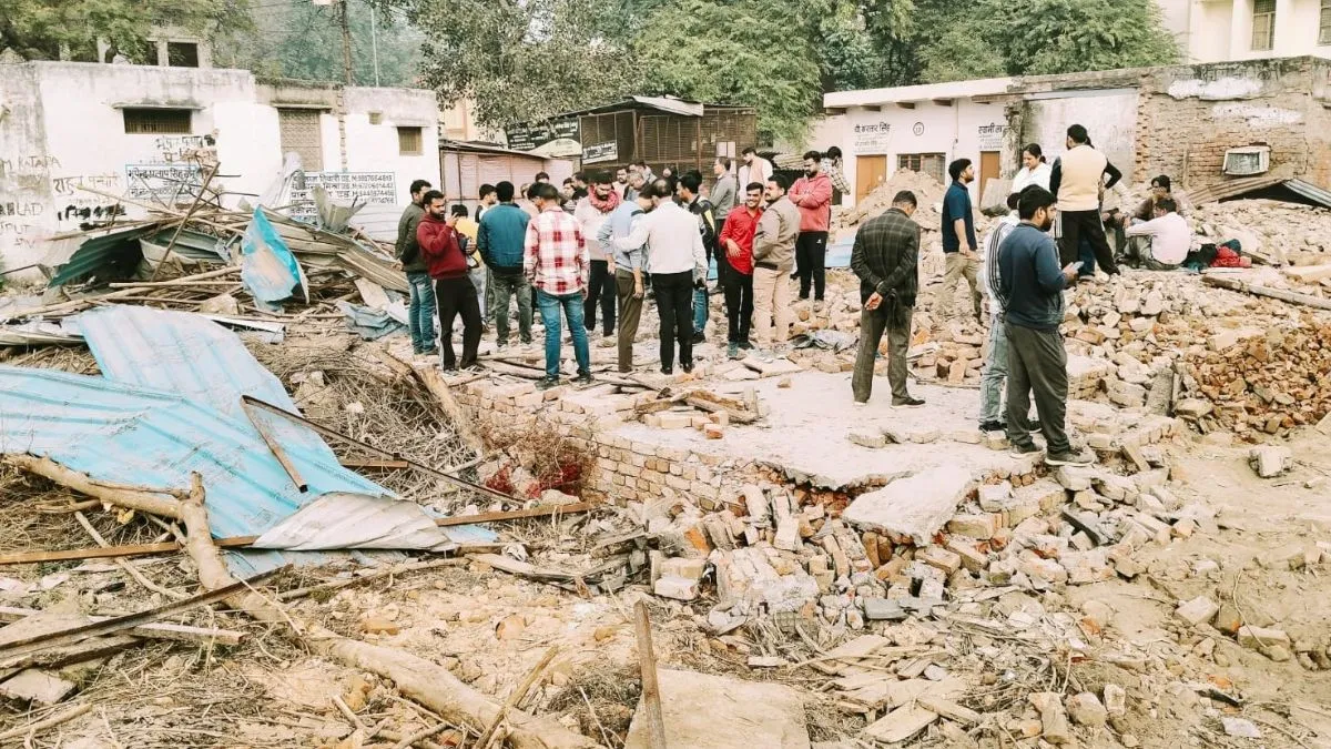 मथुरा में ध्वस्त किए गए वकीलों के चैंबर।