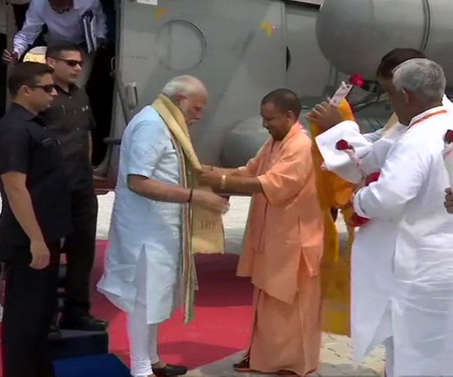 प्रधानमंत्री नरेंद्र मोदी का मुख्यमंत्री योगी ने किया स्वागत