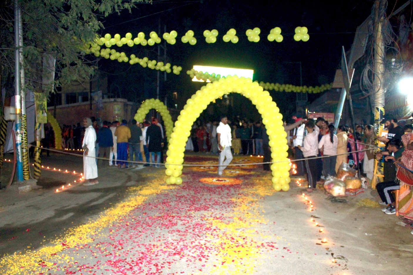संत प्रेमानंद का स्वागत करने के लिए श्रद्धालुओं ने गुब्बारे से बनाए तोरणद्वार और रंगाेली सजाकर किया दीपदान। - फोटो: जागरण।