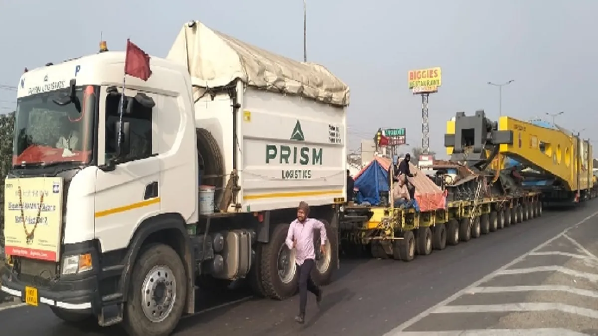 तीन दिनों से कोहरे की मार से मशीन को ले जाने वाले करीब 100 कर्मचारियों की टीम दौराला क्षेत्र में हाईवे पर मटौर के ट्रक सर्विस लेन में खड़ी थी। इस जिस 324 टायरों वाली गाड़ी पर यह मशीन रखी थी, उस गाड़ी के साथ दो अन्य बड़े ट्रक भी थे, जिनमें छोटी मशीनें रखीं थीं। इनके अलावा तीन बोलेरो गाड़ियों में संबंधित कंपनी के अन्य कर्मचारी भी सवार थे। इन सभी पर वाकीटाकी सेट थे। लंबी, चौड़ी और भारी भरकम मशीन को आगे दस टायरा ट्रक खींच रहा था, जबकि दूसरा ट्रक पीछे से धकेल रहा था।