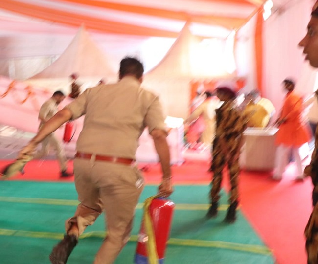 पद्म विभूषण स्वामी रामभद्राचार्य महाराज की कथा के दौरान मंच के पीछे अचानक शार्ट सर्किट होने से एसी के आउटडोर यूनिट का कंप्रेशर फटने से आग लग गई। मंच पर मौजूद भजन मंडली और श्रद्धालुओं में अफरा-तफरी मच गई। मौके पर मौजूद फायर ब्रिगेडकर्मियों ने तत्काल अग्निशमन यंत्रों से आग पर काबू पाया।