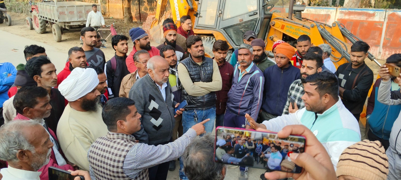 हस्तिनापुर : मौके पर नगर पंचायत के टीम व निर्माणकर्ता में होती बहस। जागरण