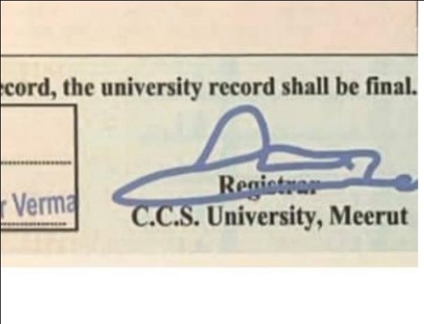जो वर्तमान में पदभार संभाल रहा हो उसके हस्ताक्षर वाली मुहर ही मार्कशीट पर लगनी चाहिए। यह गलती पकड़ में आई है जिससे अब सुधार दिया गया है। -धीरेंद्र कुमार, रजिस्ट्रार, सीसीएसयू
