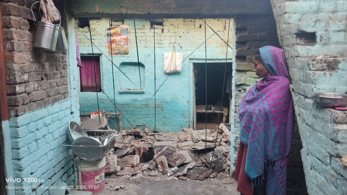 वहीं दूसरी ओर, अफजलगढ़ : गांव सीरवासुचंद में बुधवार शाम तिलका देवी पत्नी छत्रपाल की मकान लेंटर अचानक गिर गया। महिला ने बताया कि बताया कि उसका पति छत्रपाल सिंह, पुत्री सपना, तीन पुत्र मयंक, प्रिंस, बिट्टू जो सभी लोग छत के ऊपर बैठकर धूप सेक रहे थे। लेकिन वह लेंटर गिरने से कुछ देर पहले ही नीचे उतर कर घर के बाहर थे।