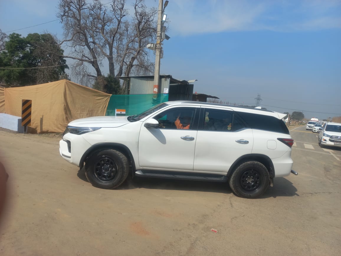 निरीक्षण को गाड़ी में बैठ निर्माणाधीन खेल विश्वविद्यालय पहुंचे सीएम