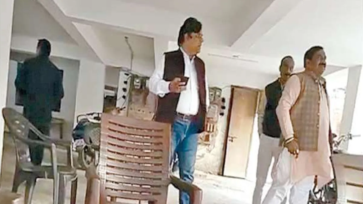विवाद के बाद अपार्टमेंट में मौजूद भाजपा नेता अजय भराला।