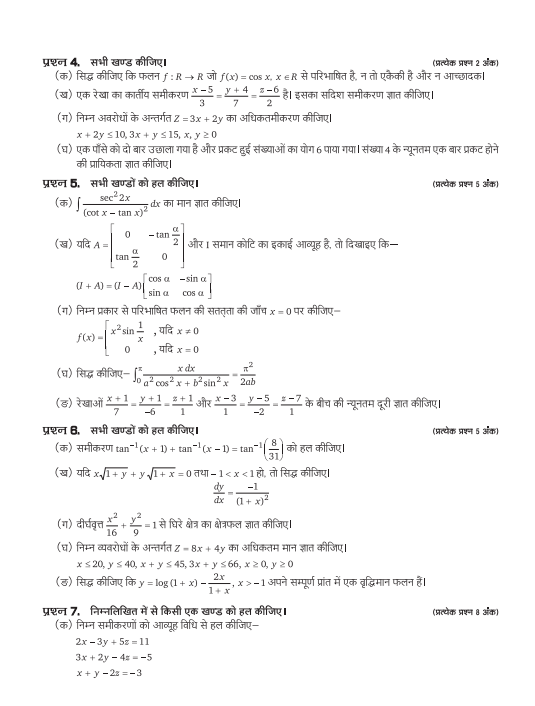 दो रेखाओं के बीच की दूरी, कोण, क्षेत्रफल तथा निश्चित समाकलन में से हर साल प्रश्न आते ही हैं। इन्हें अच्छी तरह तैयार करें। सूत्रों को लिखकर ठीक से याद करें। पेपर में जो प्रश्न न आता हो उस पर समय खराब न करें। साफ लिखावट में लिखकर क्रमश: प्रश्न हल करें। प्रत्येक प्रश्न में सूत्र आवश्यक लिखें तथा निश्चित समाकलन में प्रगुण नंबर चार पर आधारित प्रश्नों को अवश्य करें।