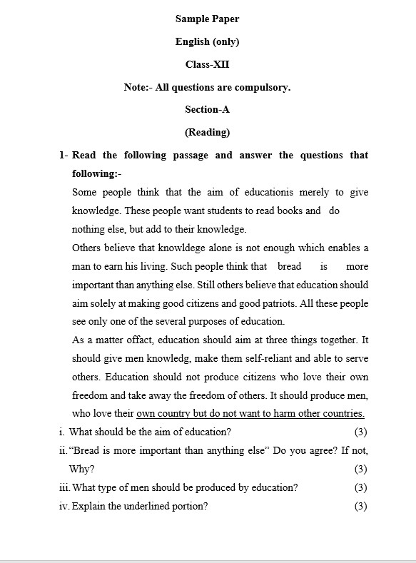 जागरण संवाददाता, मेरठ। उत्तर प्रदेश माध्यमिक शिक्षा परिषद यानी यूपी बोर्ड की परीक्षा 22 फरवरी को शुरू हो रही है। इस परीक्षा में अंग्रेजी की परीक्षा दो मार्च को है। यूपी बोर्ड के परीक्षार्थियों के लिए अंग्रेजी का पेपर महत्वपूर्ण होता है। परीक्षार्थियों के अभ्यास के लिए कक्षा 12वीं के अंग्रेजी का मॉडल पेपर दैनिक जागरण की वेबसाइट पर अपलोड कर दिया गया है।