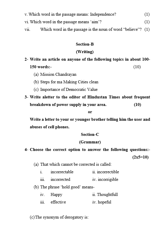 आर्टिकल और लेटर यानी पत्र लेखन 10-10 अंक के हैं। उनमें भी मदद मिलेगी। विद्यार्थी प्रजेंट इंडेफिनिटी, पास्ट इंडेफिनिटी, प्रजेंट परफेक्ट, पास्ट परफेक्ट, कंजंक्शन, मॉडल और बेसिक रूल्स का विशेष अध्ययन करें। इनको कतई नजरअंदाज न करें।