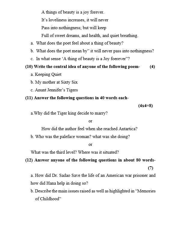 एक कविता, अ रोड साइड स्टैंड भी नई है। विस्तास में, मेमोरीज आफ चाइल्डहुड, शामिल किया गया है। इन अध्यायों को विशेष रूप से तैयार करें। इससे पेपर में प्रश्न जरूर पूछे जाएंगे।