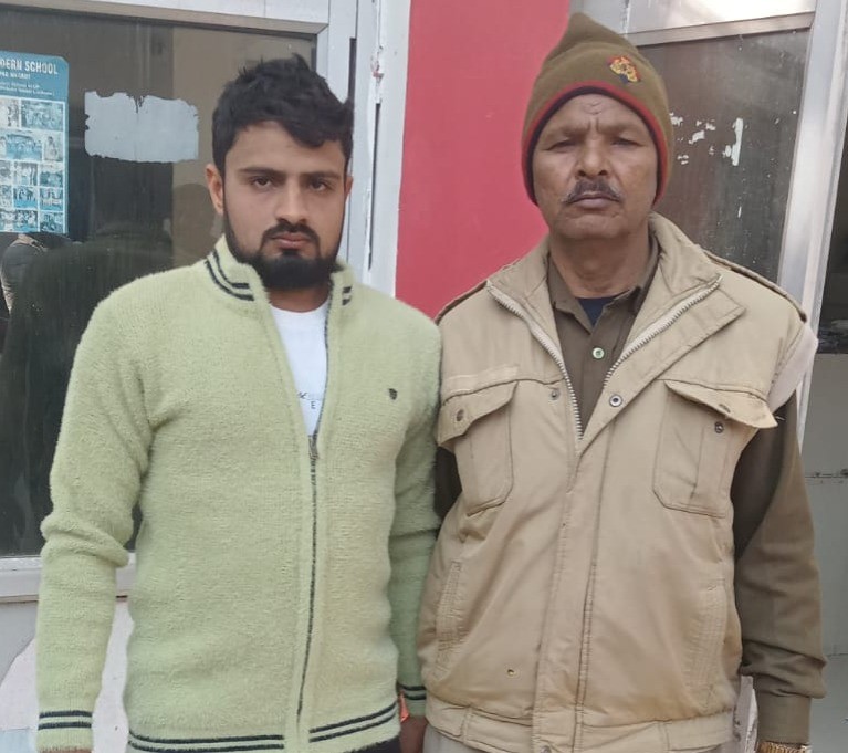 पुलिस की गिरफ्त में शादी समारोह में हर्ष फायरिंग करने का आरोपित शाहजेब।