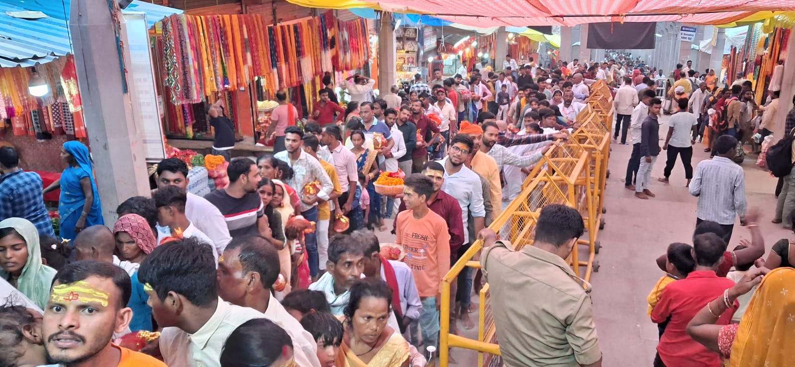 गेट नंबर 2 पर दर्शन के लिए दो प्रमुख लाइनें बनी थीं। एक पक्का घाट की ओर से और दूसरी जयपुरिया गली से होकर आती थी। इन मार्गों से होते हुए श्रद्धालुओं ने गर्भगृह में पहुंचकर मां विन्ध्यवासिनी के दर्शन किए और पूजा-अर्चना की।