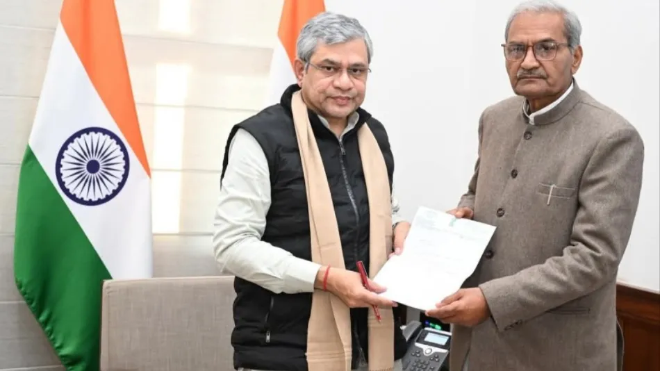 मीरजापुर रीवा रेल लाइन के लिए दिल्ली में रेल मंत्री को ज्ञापन देते रीवा सांसद जनार्दन मिश्रा।