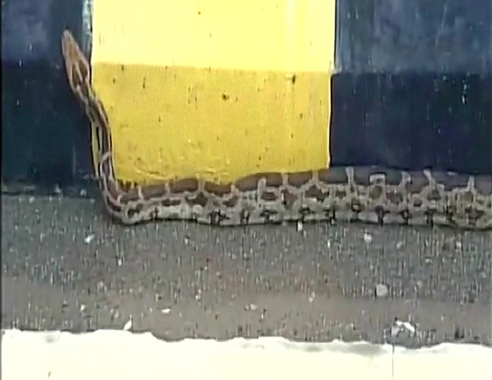 मीरजापुर में सड़क पर टहल रहा बड़ा अजगर