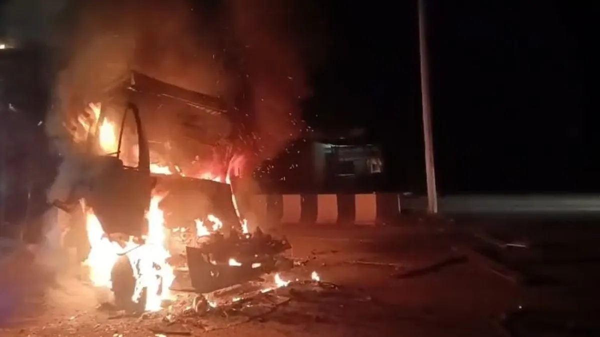 सोनभद्र में चलती ट्रक में लगी आग, ड्राइवर की जलकर मौत, एक कर्मचारी झुलसा