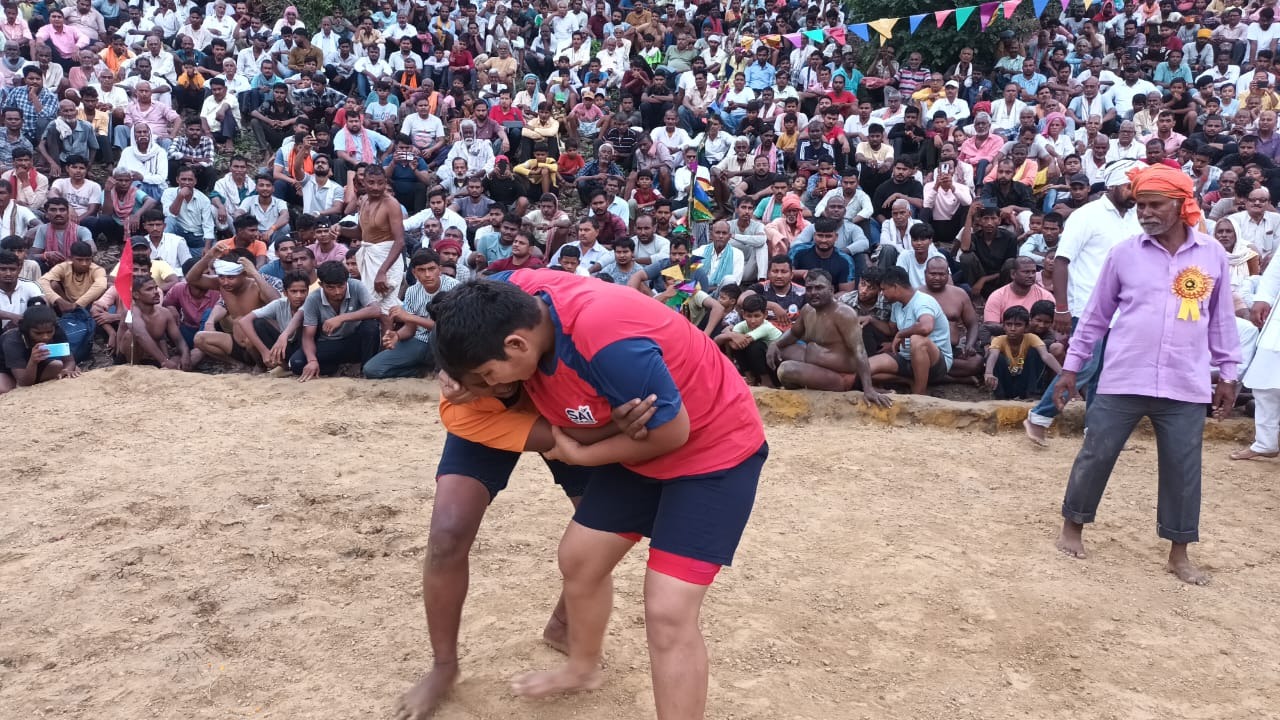 दोपहर से शुरू हुआ यह मुकाबला देर शाम तक चलता रहा। छोटी-बड़ी करीब तीन दर्जन कुश्तियों के दौरान हर दांव पर दर्शक तालियों की गड़गड़ाहट से अखाड़े को गुंजायमान करते रहे। मंच से कमेंटेटरों की जोशीली आवाज और नगाड़े की ताल ने पूरे वातावरण को जीवंत बना दिया।