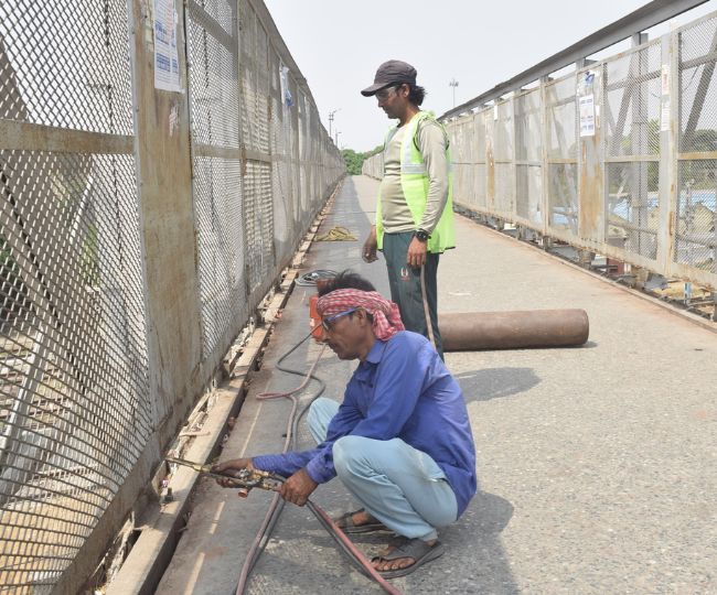 कपूर कंपनी और लाइनपार में चिड़िया टोला की ओर से बेरिकेडिंग लगा दी गईं और पुल बंद होने का सूचना बोर्ड भी लगा दिया।