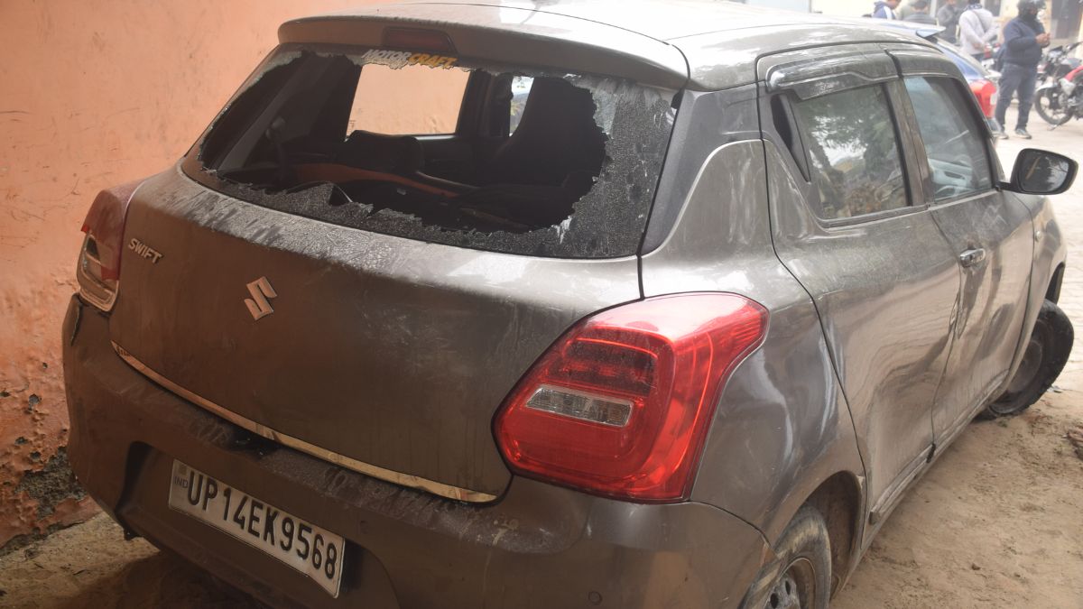 थाना सिविल लाइंस में खड़ी अपहरणकर्ता क्षतिग्रस्त गाड़ी। जागरण