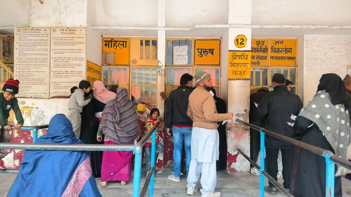 जिला अस्पताल में दवा लेने के लिए लाइन में लगे लोग