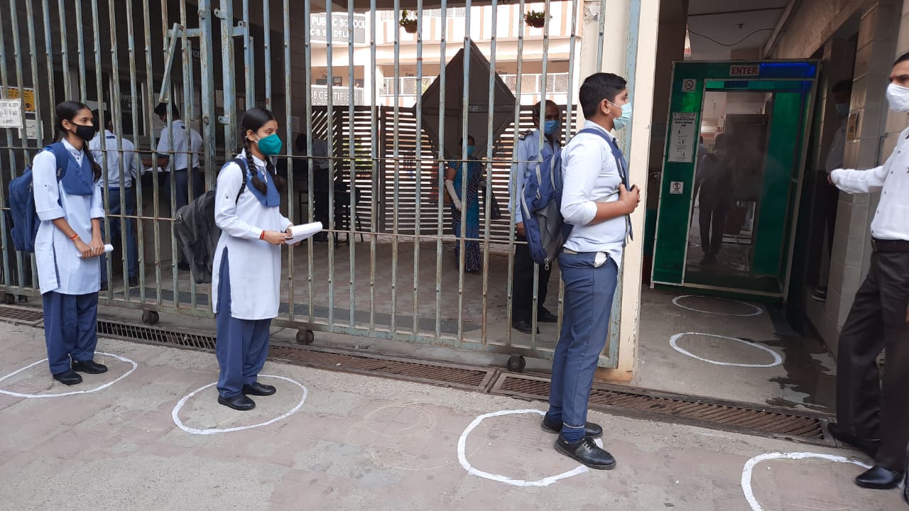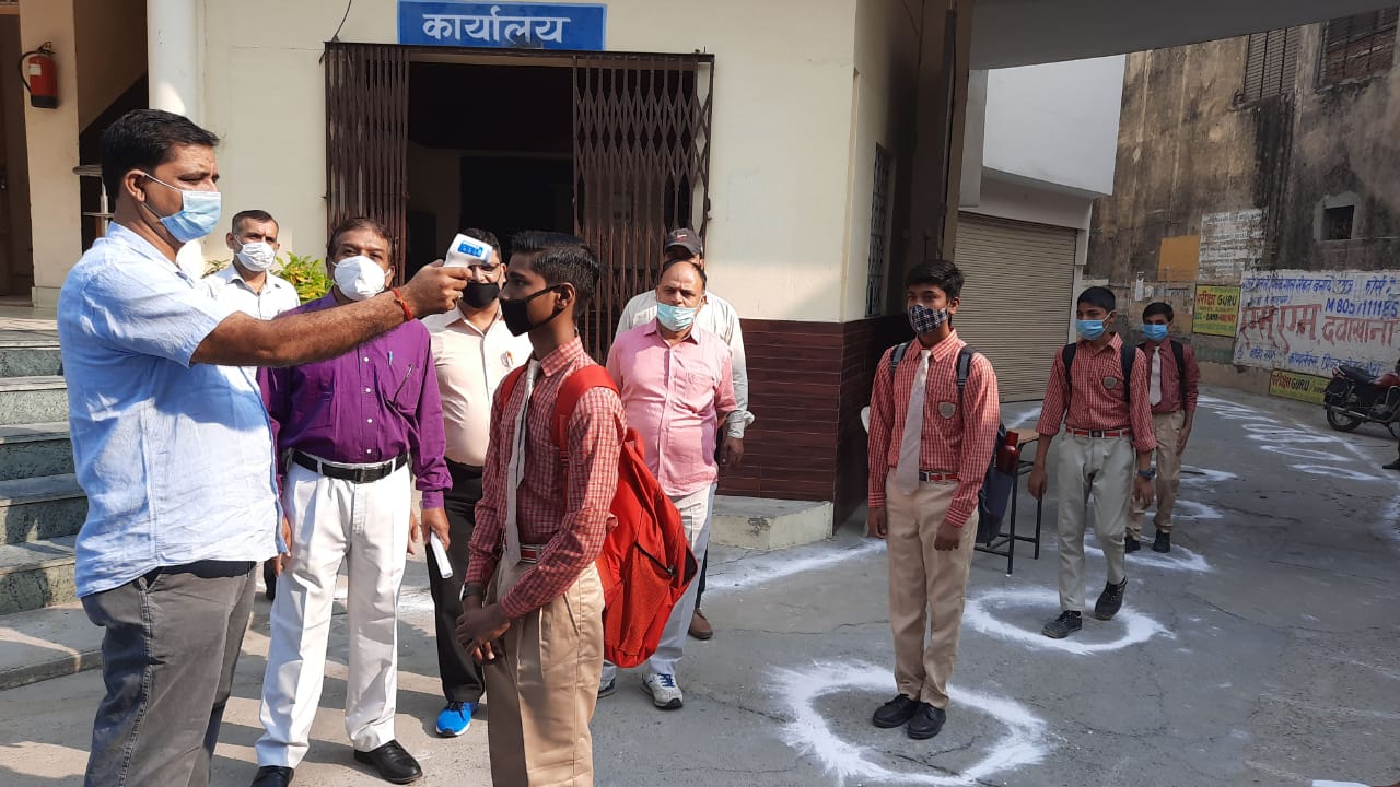 कोरोना महामारी के कारण आठ माह के बाद स्कूल-कालेज सोमवार को खुले। शासन व प्रशासन की गाइड के अनुसार स्कूल प्रशासन-प्रबंधन ने कोविड-19 के नियमों के तहत पूरी तैयारी की। कक्षा नौ से 12वीं तक के छात्र-छात्राएं स्कूल पहुंचे। जबकि नर्सरी से आठवीं तक के छात्र घर पढ़ेंगे।