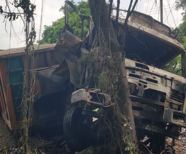 पेड़ से टकराने के बाद डंपर रुक गया लेकिन पेड़ के ऊपर से जा रही 11000 की लाइन टूटने से डंपर के केबिन में आग लग गई। हादसे के बाद चालक वाहन से भाग गया। जानकारी मिलते ही पुलिस और फायर ब्रिगेड की गाड़ी मौके पर पहुंची और आग को बुझाया।