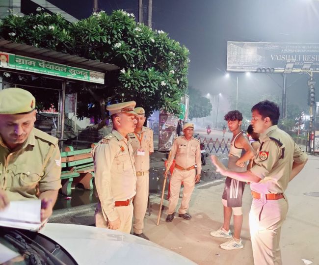 रात में पुलिसकर्मियों से जानकारी लेते एसपी सिटी।
