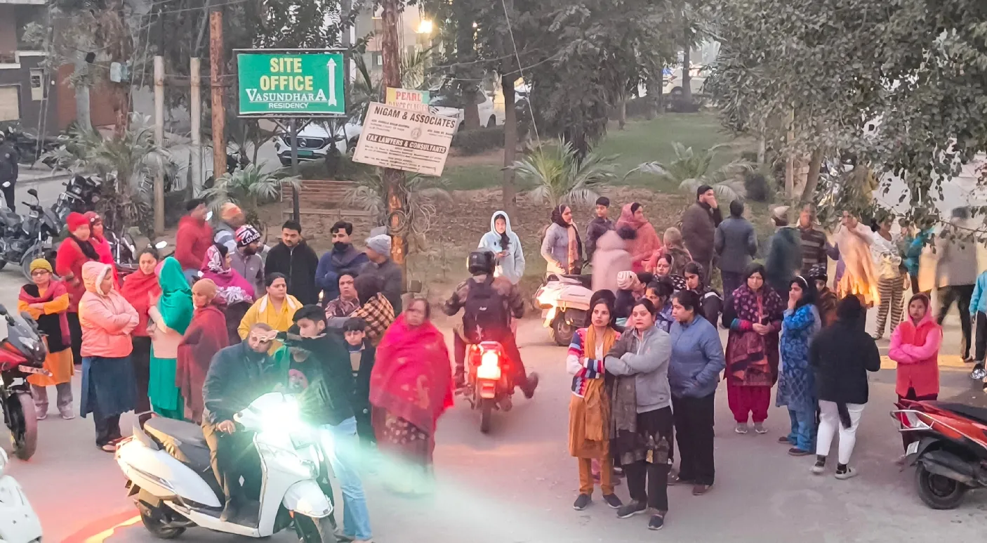 वसुंधरा कालोनी के मकान में आग के बाद मौके पर लगी भीड़