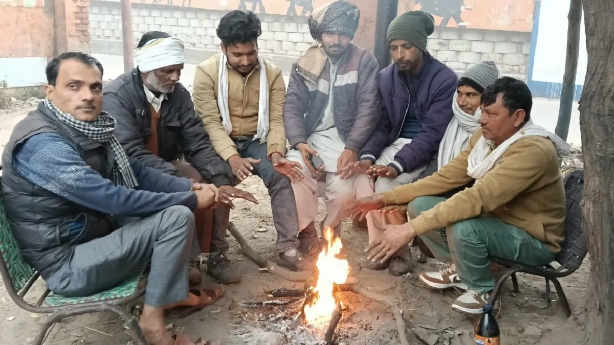 मुजफ्फरनगर में पुल के नीचे अलाव जलाकर हाथ सेंकते लोग। जागरण