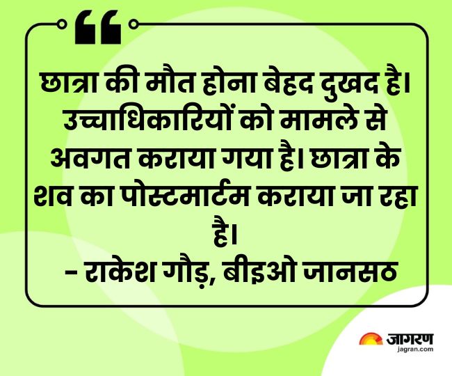 सीएचसी प्रभारी डॉक्टर अजय कुमार ने बताया कि दोपहर के समय जब छात्रा अस्पताल पहुंची तो उसकी हालत बेहद खराब थी। प्राथमिक उपचार देने के बाद उसे जिला अस्पताल के लिए रेफर कर दिया गया। जहां पर उसकी मौत हो गई। उन्होंने बताया कि छात्रा की मौत का कारण पोस्टमार्टम रिपोर्ट में ही स्पष्ट हो पाएगा। उन्होंने बताया कि अन्य सभी छात्राओं के स्वास्थ्य की भी जांच की गई है।