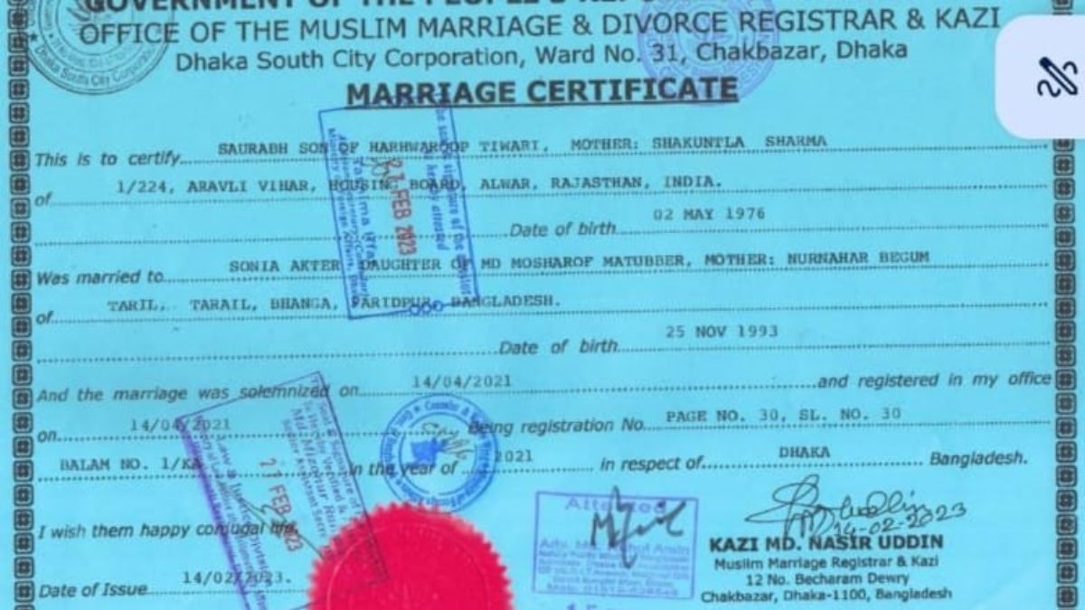 नोएडा, जागरण संवाददाता। सोनिया अख्तर (Sonia Akhtar) से शादी करने के लिए बांग्लादेश में सौरभकांत तिवारी नाम बदलकर सौरभ बन गया था। यह दावा सोनिया ने पुलिस को निकाहनामा और शपथ पत्र सौंपते हुए किया है।
