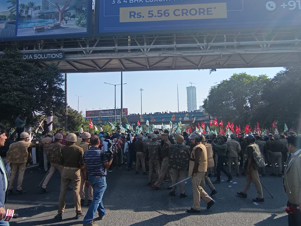 Farmers Protest: संसद कूच के लिए अड़े किसान, महामाया फ्लाईओवर के नीचे सुरक्षाकर्मियों ने रोका; लगा लंबा जाम
