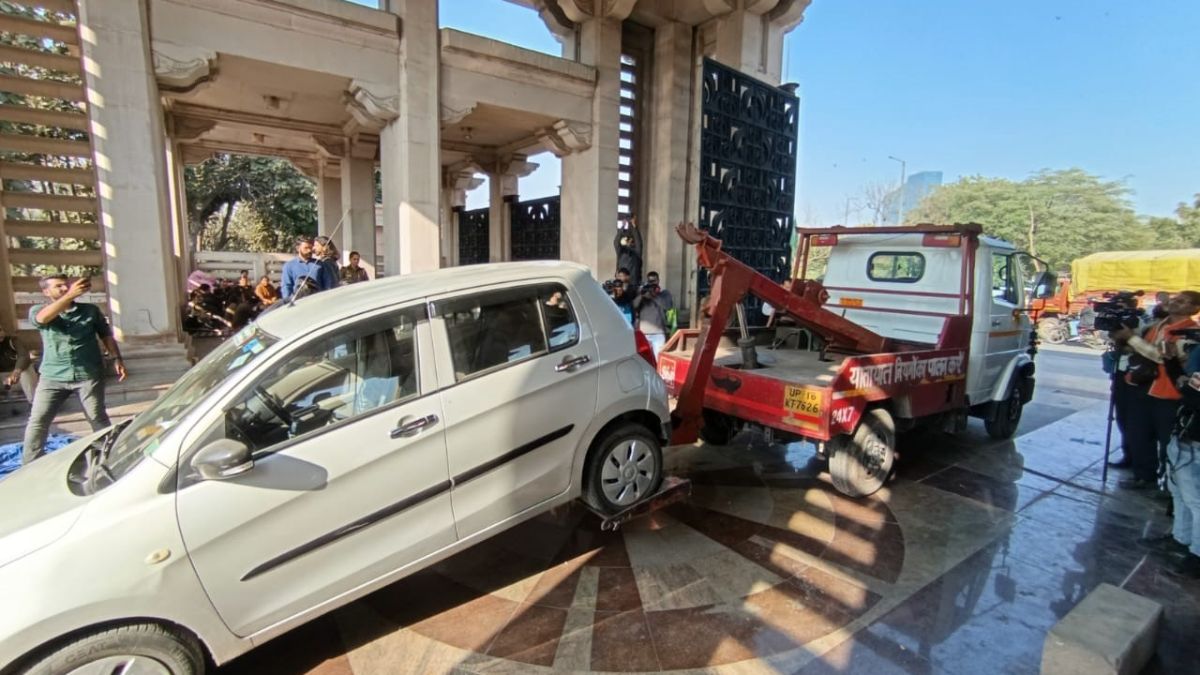 दलित प्रेरणा स्थल के अंदर खडी किसानों की गाडियों के चालान कर टो कर ले जाया गया। जागरण