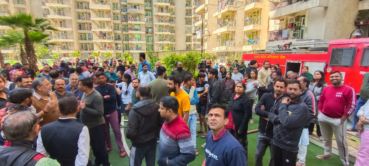 गौर सिटी के 16th एवेन्यू में दो फ्लैट में लगी भीषण आग
