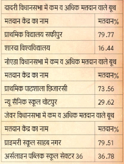 दादरी विधानसभा में कम व अधिक मतदान वाले बूथ