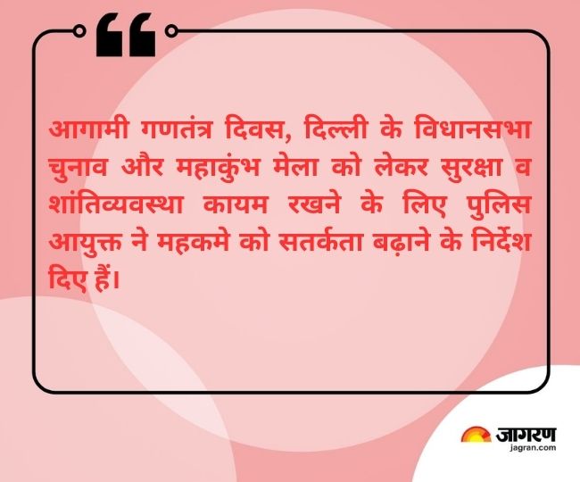आगामी गणतंत्र दिवस, दिल्ली के विधानसभा चुनाव और महाकुंभ मेला को लेकर सुरक्षा व शांतिव्यवस्था कायम रखने के लिए पुलिस आयुक्त ने महकमे को सतर्कता बढ़ाने के निर्देश दिए हैं। इसके चलते बुधवार रात को जिलेभर में पुलिस टीमों ने पेट्रोलिंग की। होटल, रेस्टोरेंट, ढाबों समेत यात्रियों के ठहराव स्थलों का निरीक्षण किया गया। प्रतिष्ठानों से ठहरने वालों के पहचान-पत्र आदि जांचे गए।