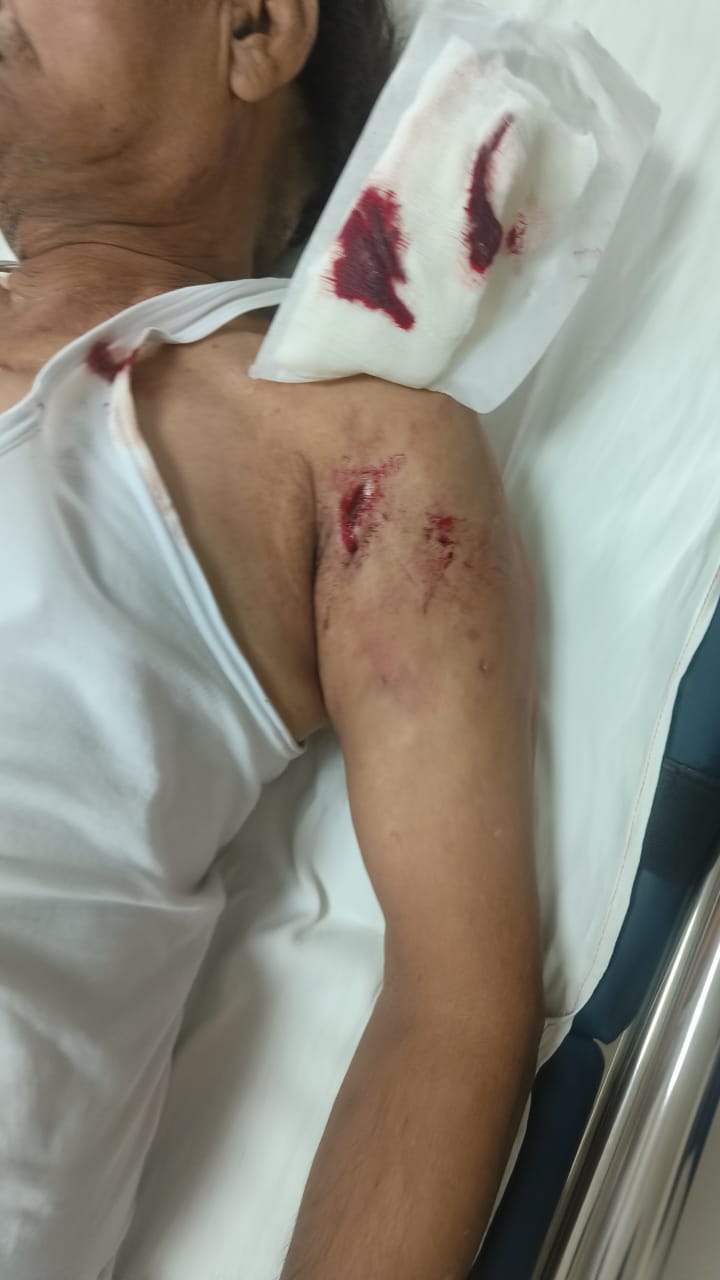 सोसायटी के लोगों ने बताया कि बुजुर्ग के कान व हाथ में टांके आए हैं। घटना के बाद से सोसायटी के लोगों में डर का माहौल है।