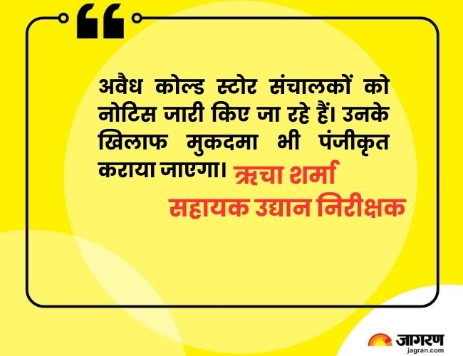 उसके साथ पांच अन्य अवैध कोल्ड स्टोर संचालकों को नोटिस जारी किए जा रहे हैं। उनके खिलाफ मुकदमा भी पंजीकृत कराया जाएगा। - ऋचा शर्मा, सहायक उद्यान निरीक्षक, जिला उद्यान विभाग