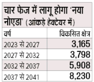 प्रदेश सरकार ने नया नोएडा के साथ ही यमुना प्राधिकरण (यीडा) के मास्टर प्लान 2041 को भी स्वीकृति दे दी है। इससे यमुना प्राधिकरण के अलीगढ़ की सीमा तक विस्तार का रास्ता साफ हो गया है। मास्टर प्लान को मंजूरी के बाद प्राधिकरण के फेज एक में शामिल गांवों की संख्या 226 हो गई है, जबकि शहरी क्षेत्रफल 37539 हेक्टेयर हो गया है। शहर में हरियाली का दायरा बढ़ाकर 14.77 प्रतिशत कर दिया है।