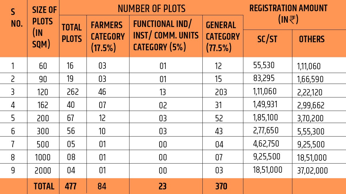 - पहले विकल्प में कीमत का एकमुश्त भुगतान करने वालों को प्लाट योजना में प्राथमिकता दी जाएगी।