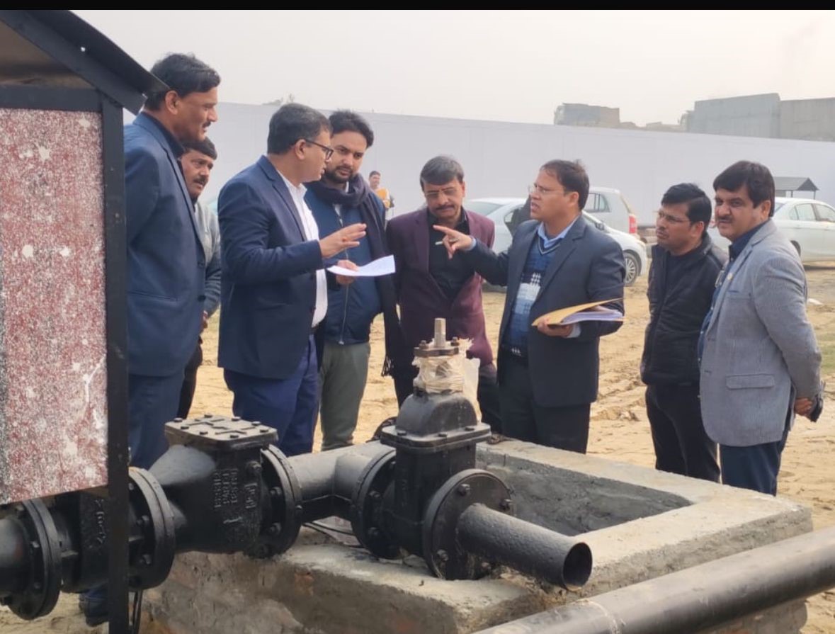 (फलैदा बांगर गांव में रेनीवेल का निरीक्षण करने पहुंचे यमुना प्राधिकरण के ओएसडी शैलेंद्र भाटिया। सौ. प्राधिकरण)