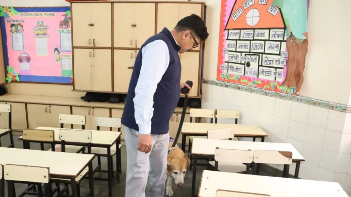 सुरक्षा व्यवस्था के मद्देनजर एक स्कूल में जांच करता बम निरोधक दस्ता का सदस्य। सौ. मीडिया सेल