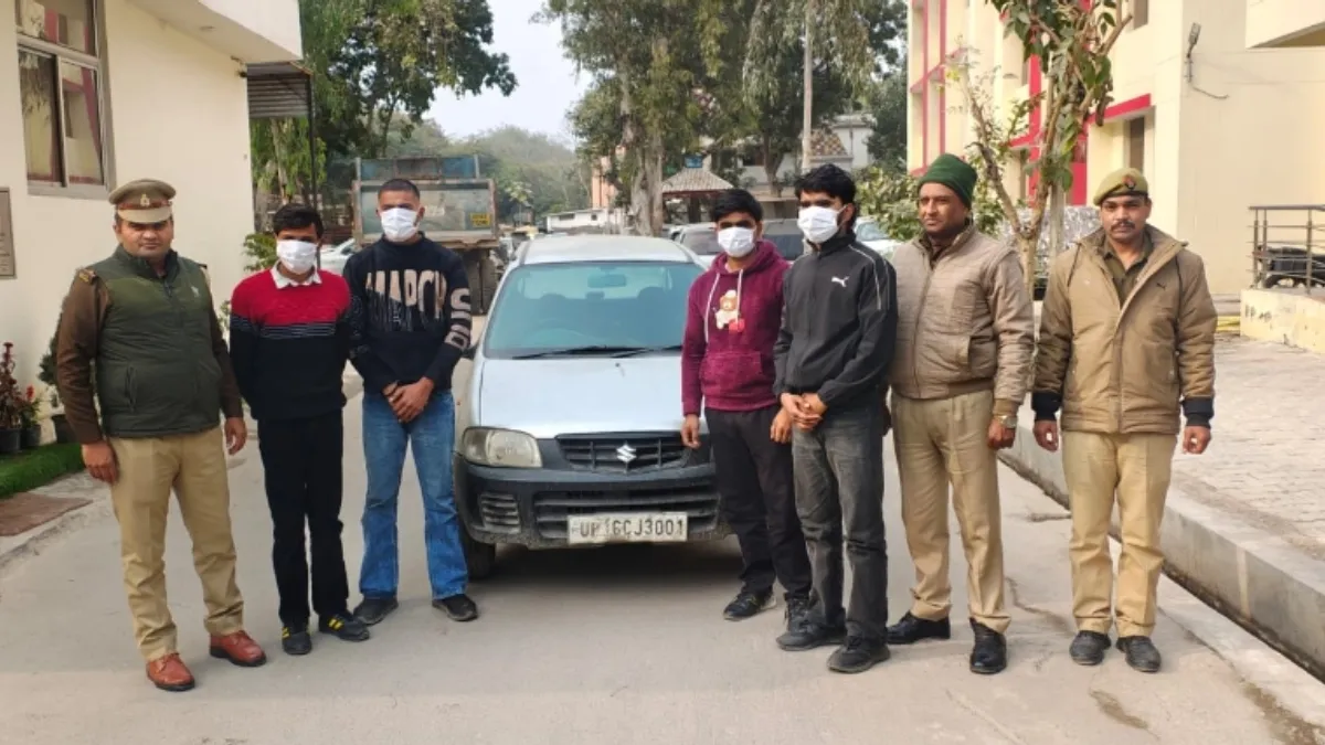 नोएडा सेक्टर 39 थाना पुलिस ने वाहन नंबर के आधार पर कार मालिक व डांस करने वाले युवकों रविवार को बादलपुर क्षेत्र से दबोचा। थाना प्रभारी डीपी शुक्ला ने बताया कि आरोपित युवकों की पहचान बादलपुर के विश्नोली गांव के दीपक रेशा, हनी रोशा, विनय भड़ाना व सोने पांडेय के रूप में हुई।