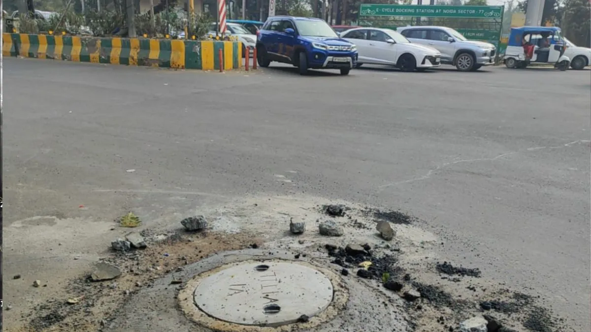 Noida News: टेलीकॉम कंपनी ने सड़क तोड ऊंचा किया मेनहोल चैंबर, पांच लाख का जुर्माना लगा