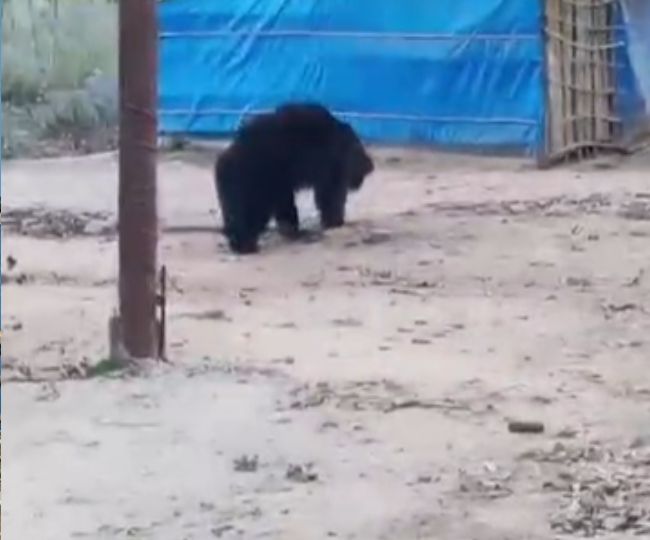 पीलीभीत में घूमता भालू का फोटो। वीडियो से ली तस्वीर।