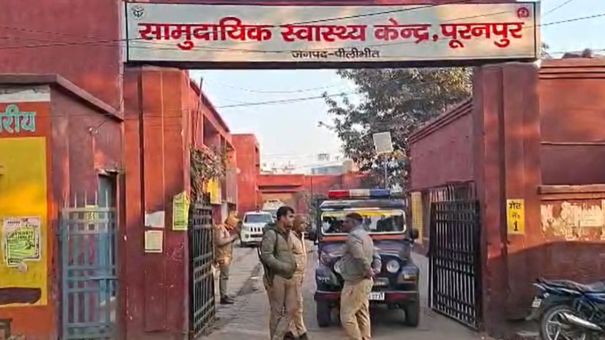 स्वास्थ्य केंद्र पूरनपुर पर मौजूद पुलिसकर्मी।