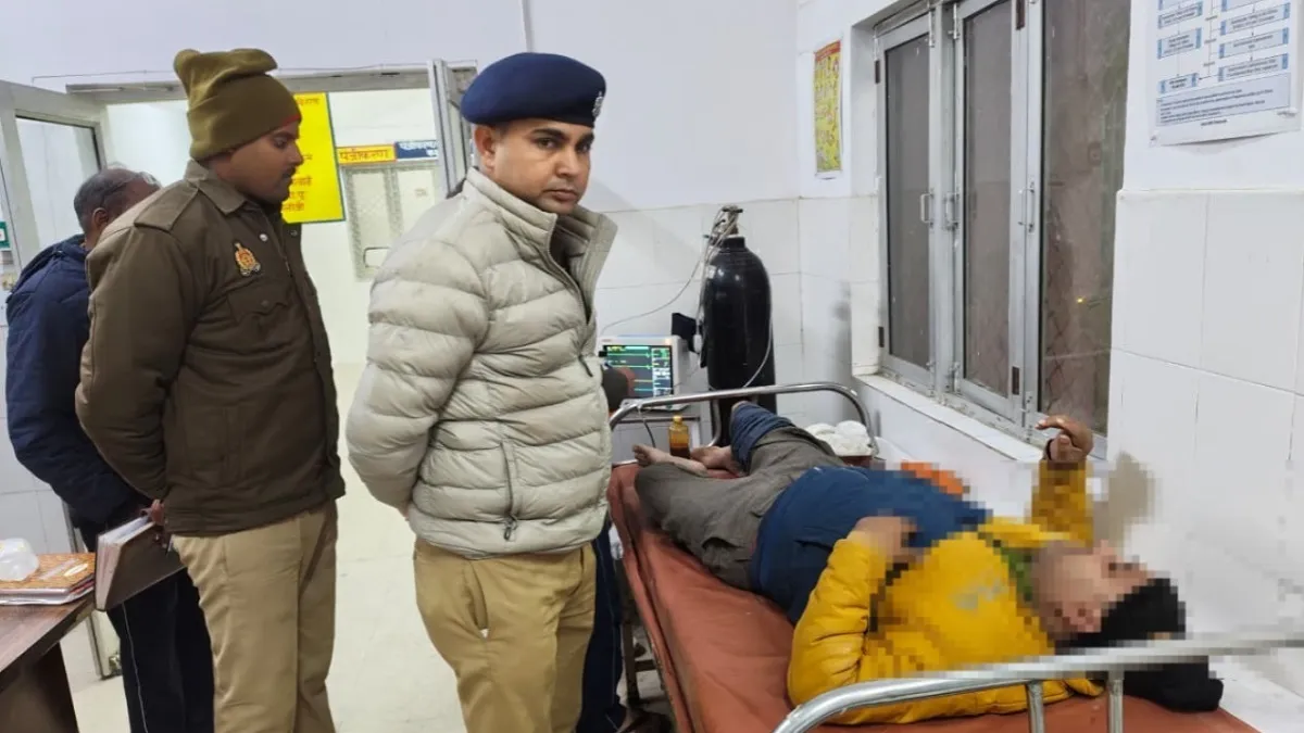 प्रतापगढ़ के रानीगंज में पुलिस मुठभेड़ में घायल बदमाश को पुलिस ने अस्पताल में भर्ती कराया। सौजन्य : पुलिस मीडिया सेल