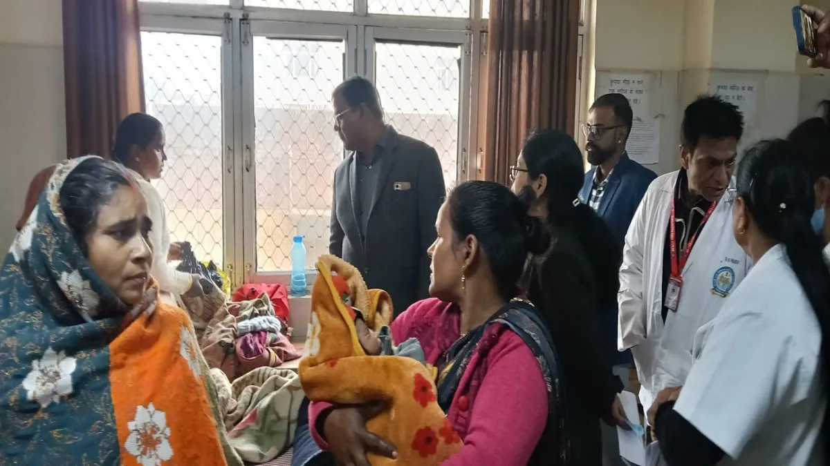 प्रतापगढ़ के राजा प्रताप बहादुर अस्पताल के महिला विंग में भर्ती महिला से जानकारी लेते मेडिकल कालेज प्रयागराज के डॉ. राजेश कुमार राय व अन्य। जागरण